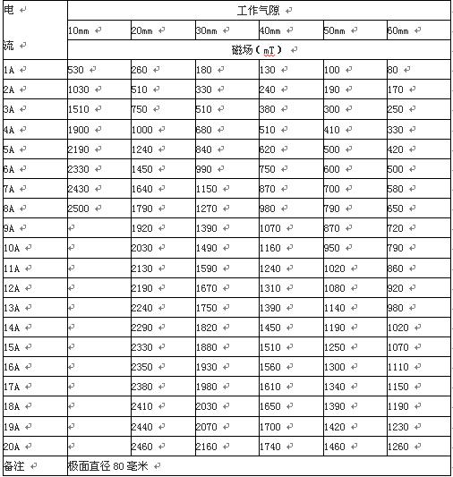 5、磁場(chǎng)參數(shù)表:(供參考)
